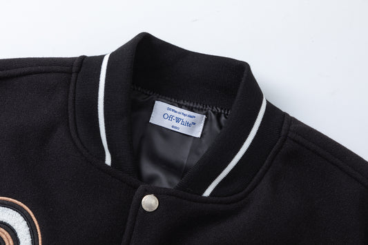 OFF WHITE new embroidered leather baseball jacket S27